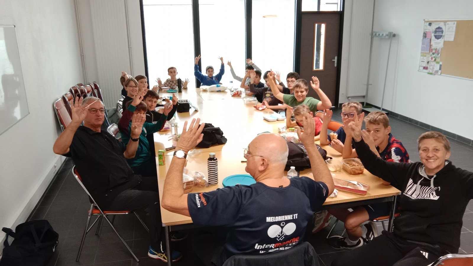 La journée s'est très bien déroulée avec 16 jeunes pongistes présents et grâce aussi aux encadrants bénévoles Jean-Claude et William, notre président Jean-Pierre et moi-même Didier. Le stage s'est terminé par un gouter offert par la Mélorienne TT.