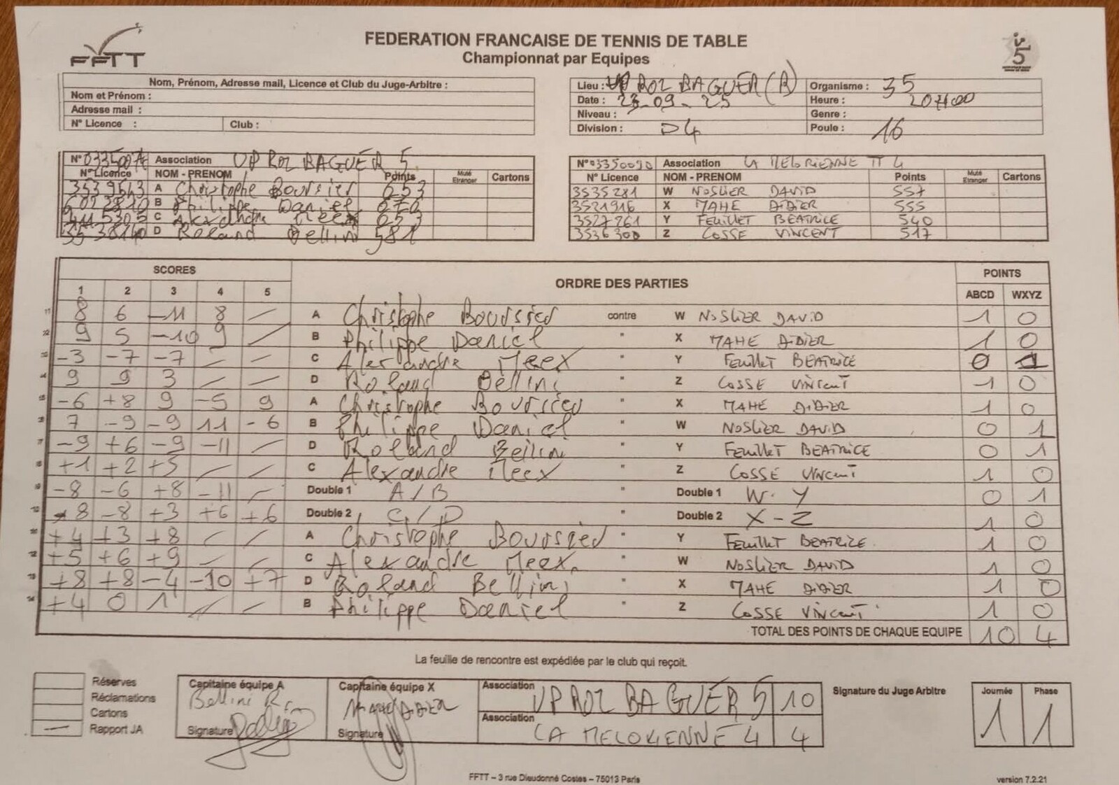 D4 du mardi 1ère phase, 1ère journée / Contre ROZ BAGUER UP 5
